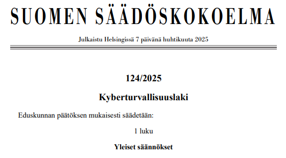 Kyberturvallisuuslaki voimassa 8.4.2025 alkaen https://ahertava.fi/wp-content/uploads/2025/04/Kyberturvallisuuslaki_124_2025.png 564 309 Ahertava https://ahertava.fi/wp-content/uploads/2025/04/Kyberturvallisuuslaki_124_2025.pngKyberturvallisuuslaki astui voimaan 8.4.2025 ja sillä toimeenpannaan EU:n kyberturvallisuusdirektiivi NIS2, joka tuli voimaan 17.10.2024. Suomen kansallinen lainsäädäntö myöhästyi EU:n vaatimuksesta, mutta ilman kansallista lakiakin, NIS2 kyberturvallisuusdirektiivi on ollut jo sovellettavissa.…